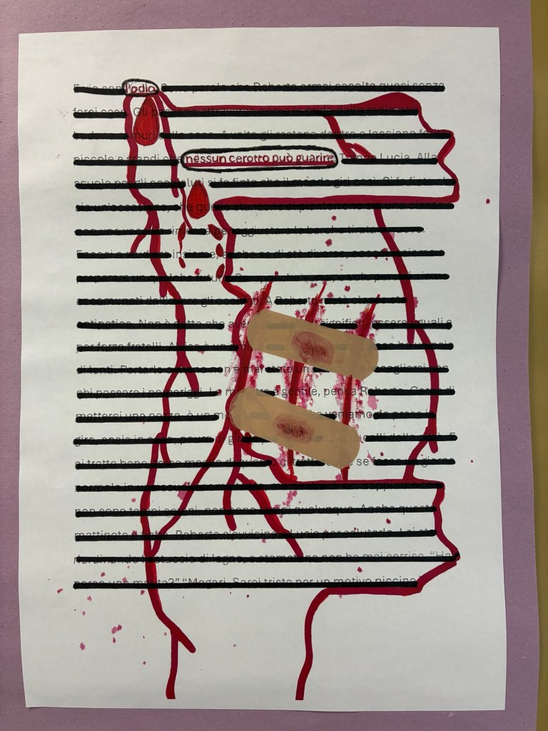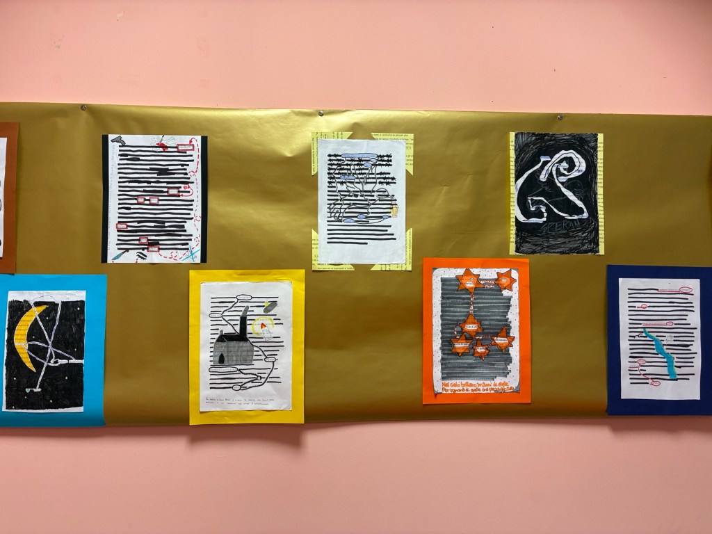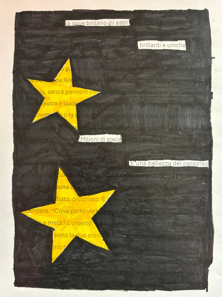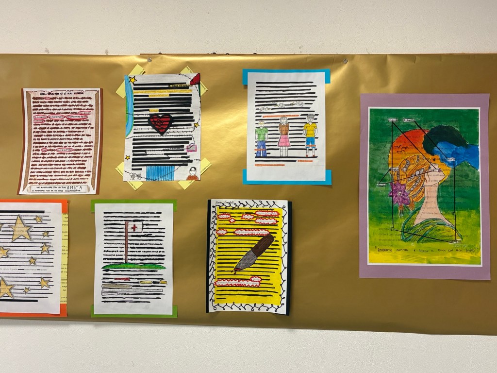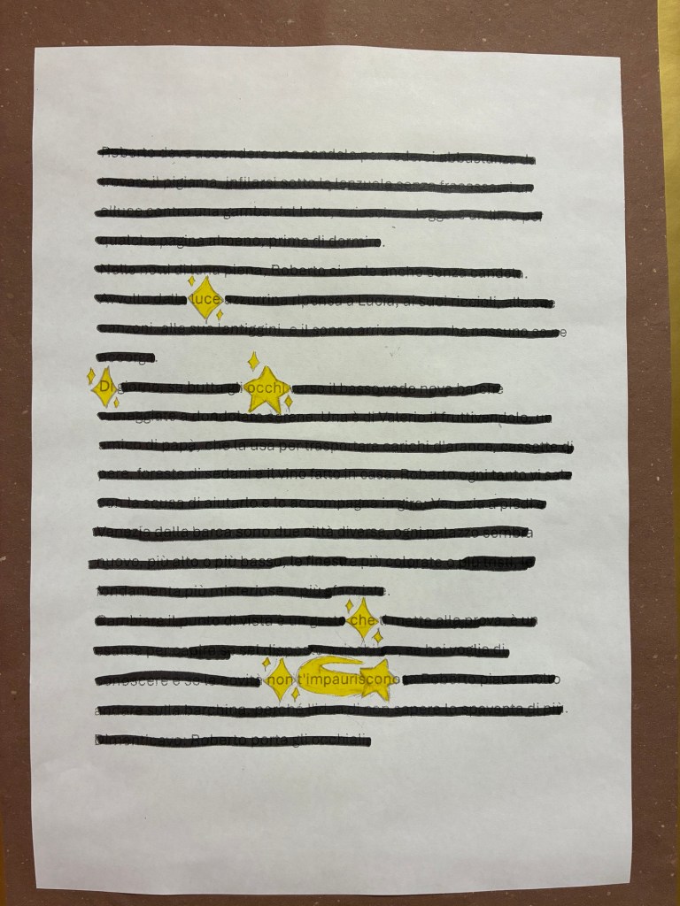 Le classi terze della secondaria “G. Mazzini” hanno realizzato una mostra con i loro caviardage, testi poetici ed espressivi che vengono creati a partire dalle parole contenute in una pagina stampata: il testo di partenza è stato il libro “Solo una parola”.