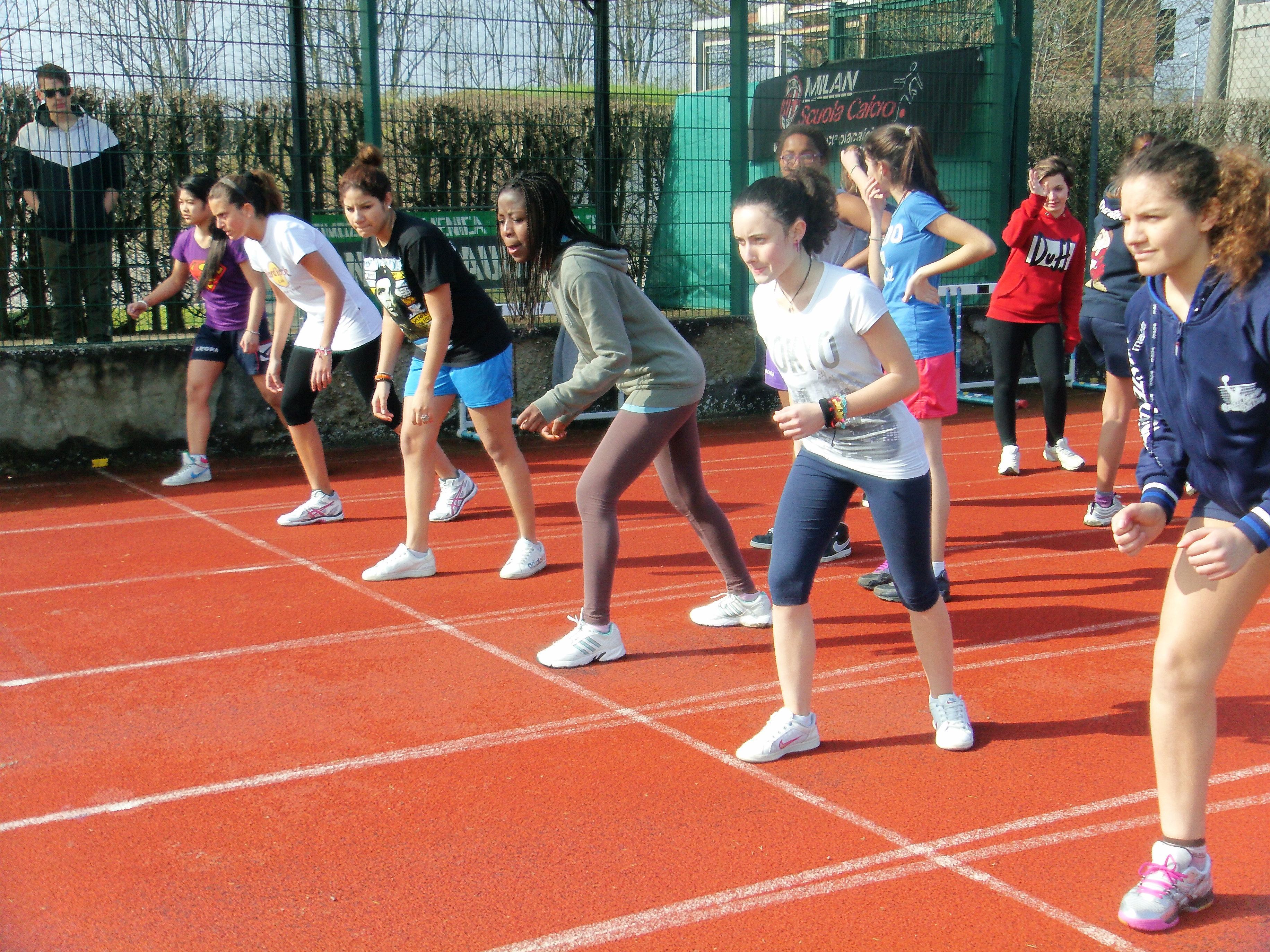 mentre i ragazzi prima si riscaldarono con qualche corsetta. Vennero divisi tutti in diverse batterie e iniziarono la gara ( anche se non alla perfezione perché la pistola non funzionava). Beh, la gara si concluse e tra i primi tre si classificò anche un mio compagno di classe: Matteo Trabacchi. Il salto in alto delle ragazze era quasi finito, intanto erano già pronte le ragazze della velocità