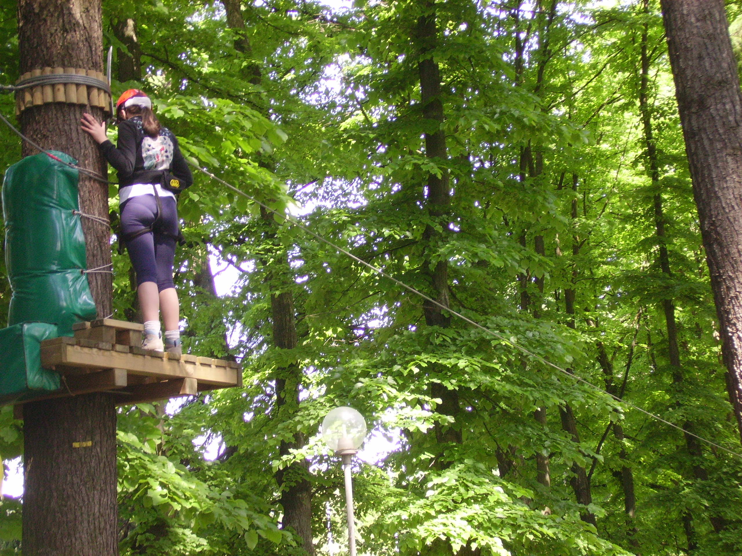 Nell’arrampicata sull’albero, gli appigli avevano dei colori a seconda dell’altezza: verde, rosso, nero; inoltre salendo erano sempre più lontani uno dall’altro, chi arrivava in cima suonava una campanella. In questa attività si utilizzavano solo due moschettoni.