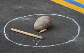“Mondo”, invece, consiste nel disegnare dieci caselle con un gesso per terra, tirare un sasso nei vari spazi e raggiungerli saltellando.