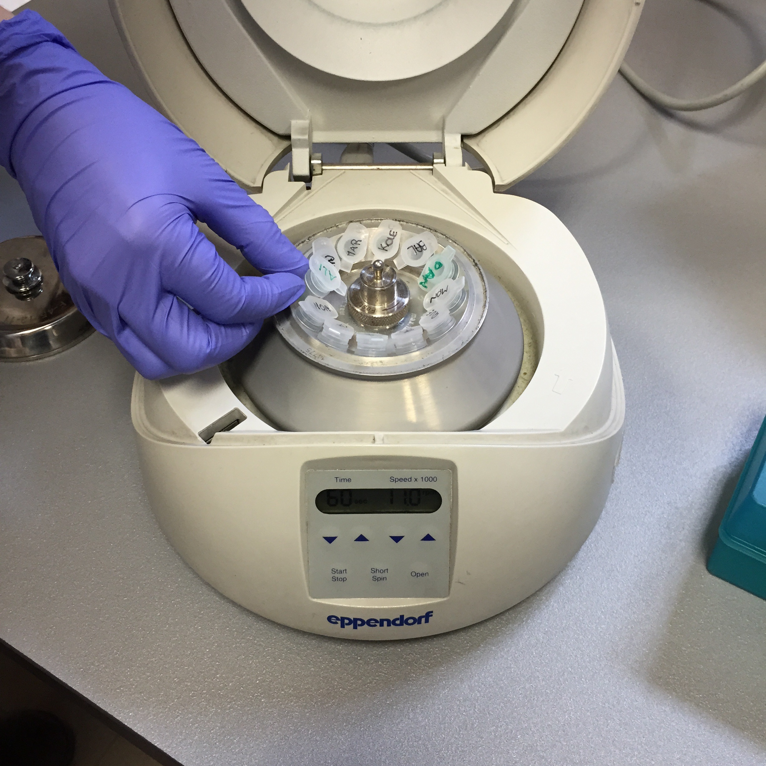Abbiamo disposto le provette dentro un recipiente che conteneva acqua ad una temperatura intorno ai 60 gradi e successivamente abbiamo più volte centrifugato e utilizzato etanolo per purificare il nostro DNA.