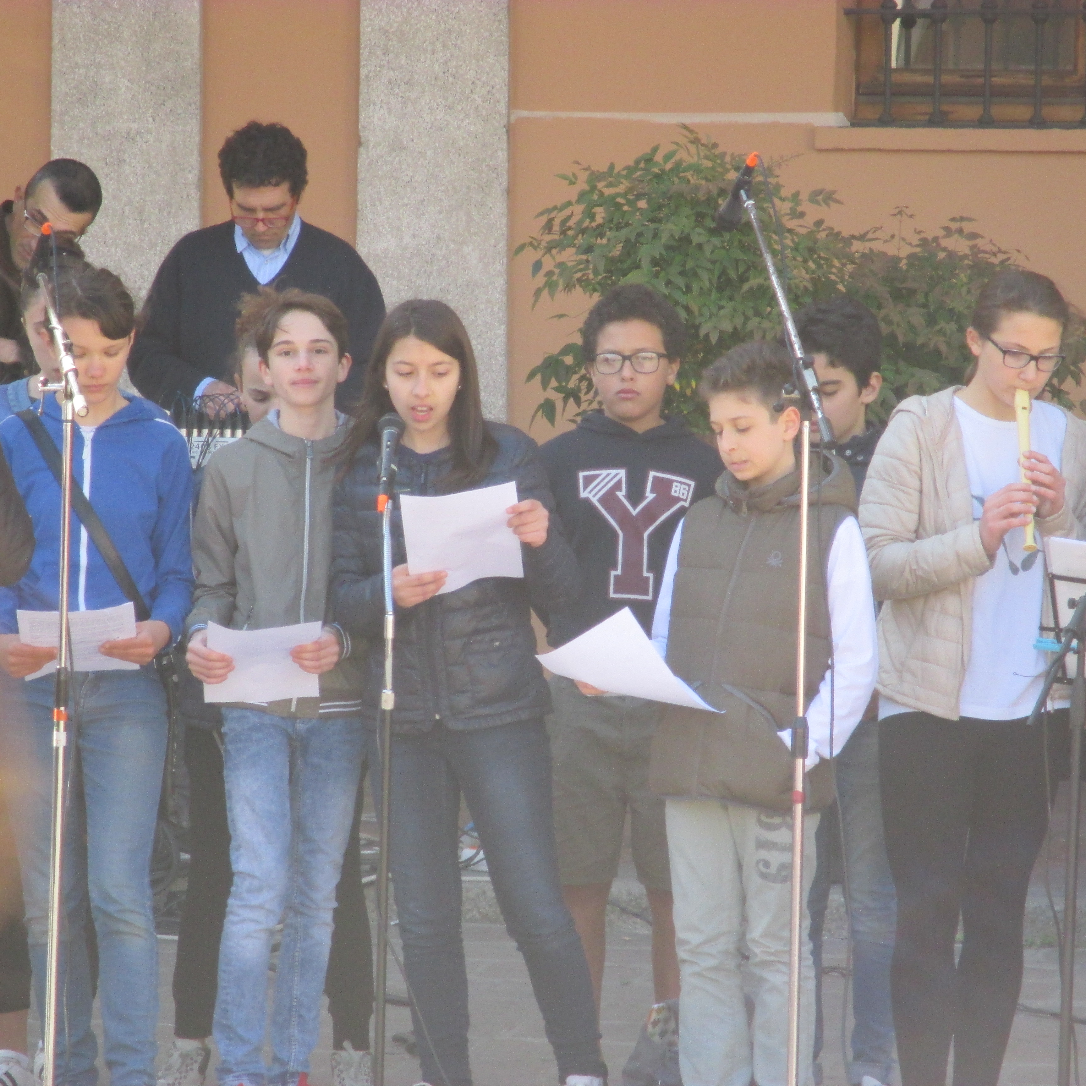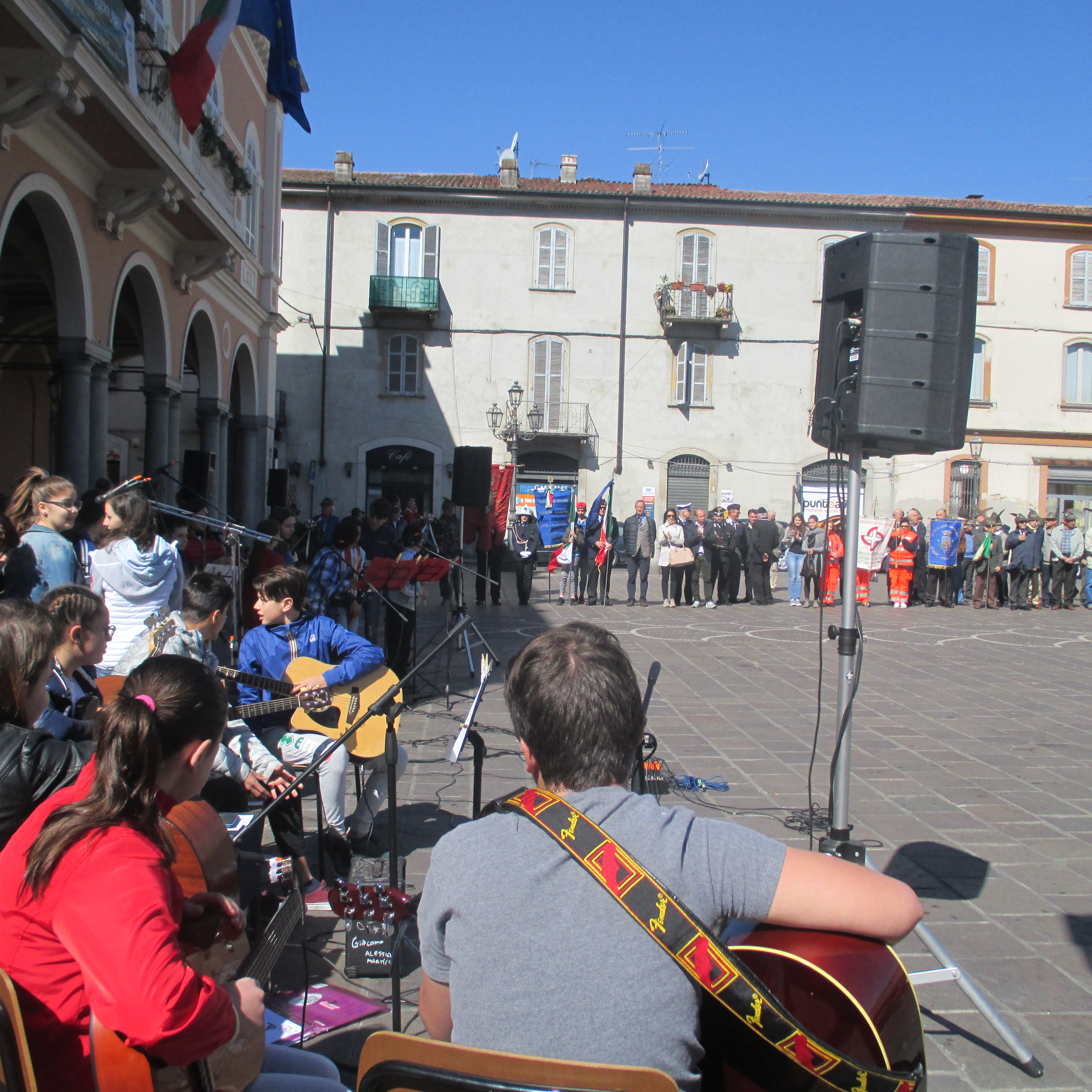 Il gruppo musicale della nostra scuola, i PMB, come tutti gli anni, ha presenziato alla celebrazione cittadina, cantando e suonando, in piazza XX Settembre, delle canzoni adatte all’occasione, come: “Fischia il vento”, “Bella ciao”, “In Flanders Fields” e l’inno “Fratelli D’Italia”.