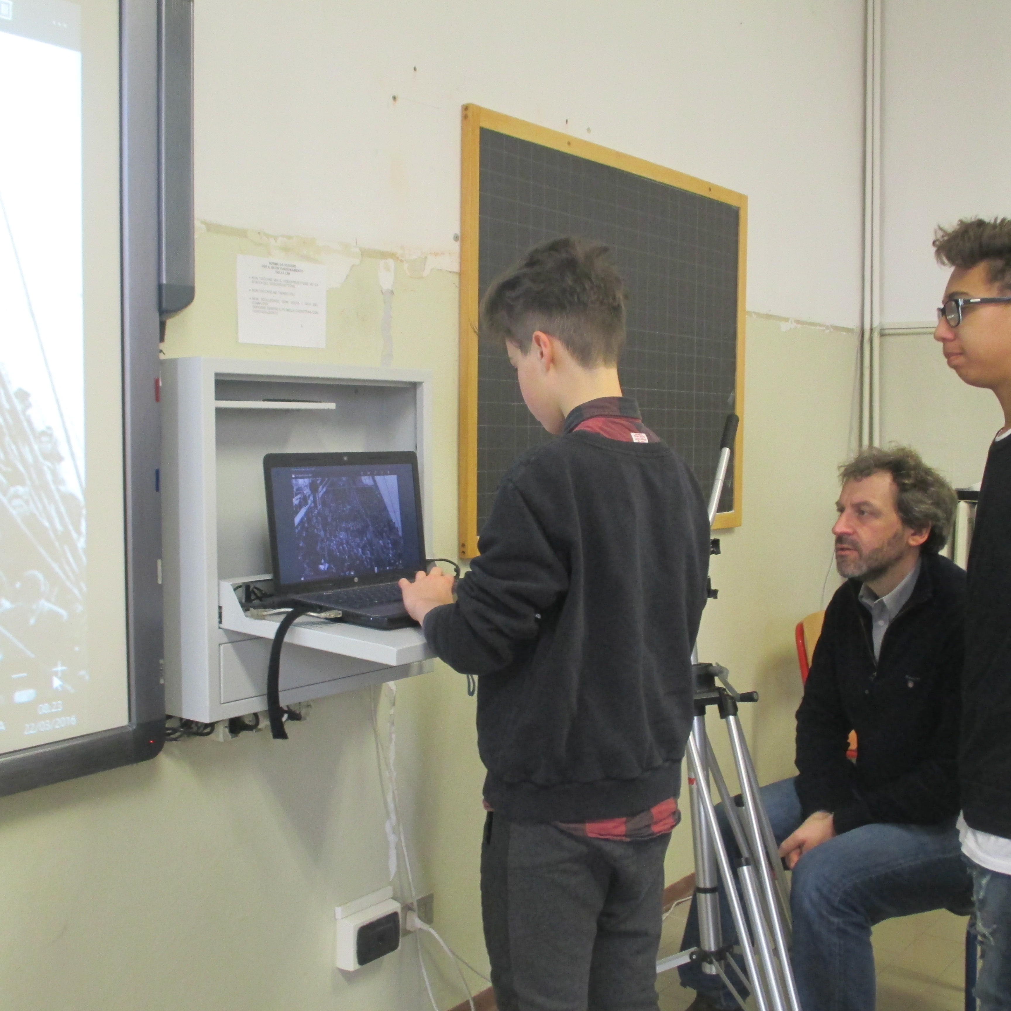 Una volta visionata l’intervista, tutte le classi hanno seguito alcune lezioni sul linguaggio cinematografico tenute dal regista e poi hanno cominciato a pensare a come rielaborare il materiale in alcuni cortometraggi.
