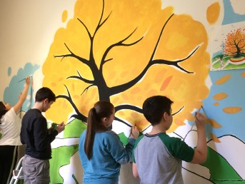 L’attività prevede la trasformazione di un triste corridoio in una grande parete colorata e piena di vita.