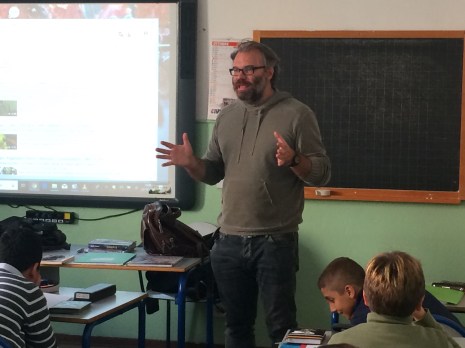 Abbiamo lavorato sodo per riuscire a cogliere i dettagli dello stile e i contenuti dell’autore che la scorsa primavera ha vinto il premio Andersen per la letteratura. Così abbiamo voluto accoglierlo facendogli vedere il frutto delle nostre fatiche: una serie di booktrailer che avevamo creato per lui e che ha molto apprezzato.