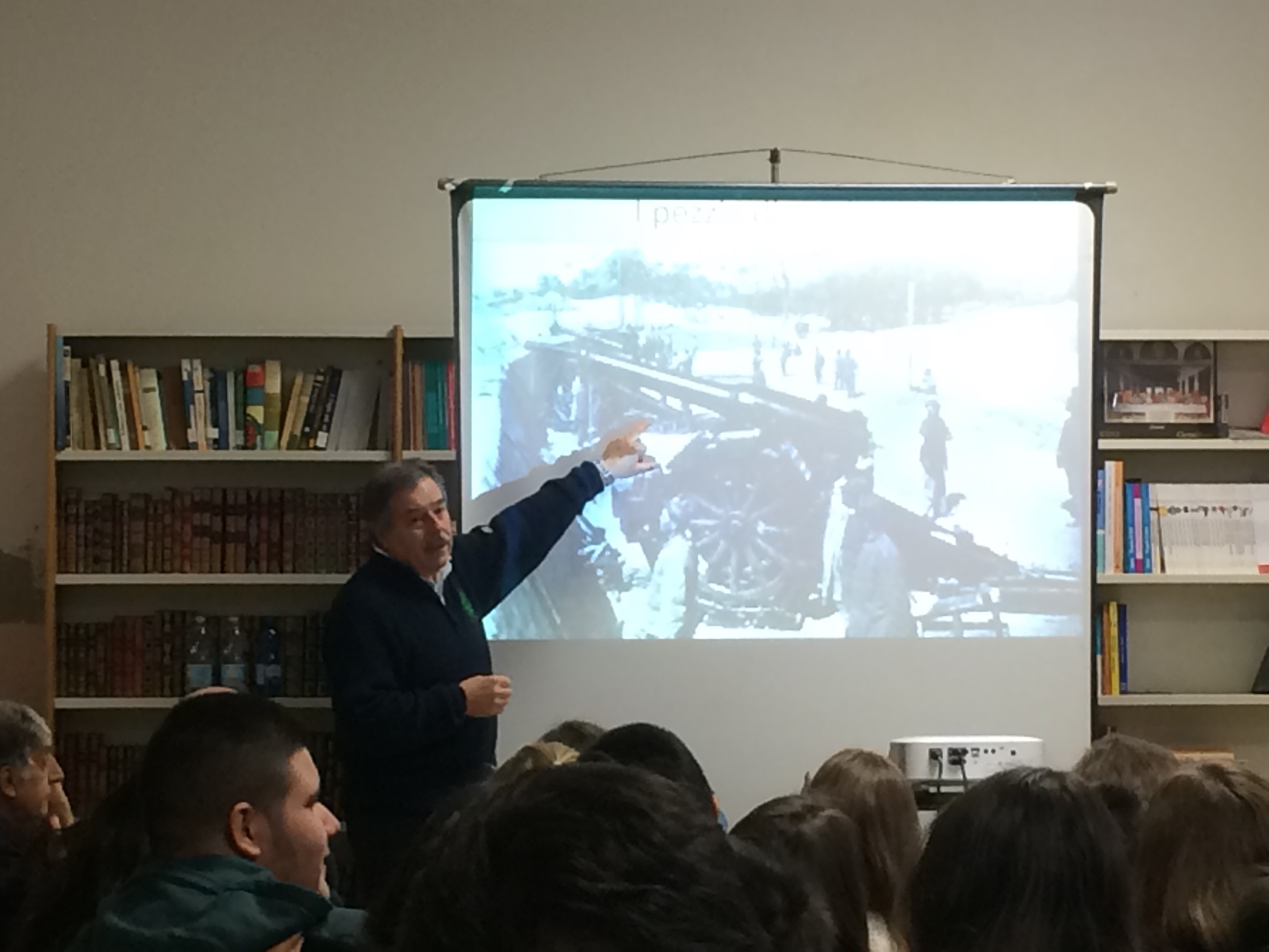 Venerdì 30 Novembre 2018, le classi terze hanno incontrato una delegazione degli Alpini presso la biblioteca della scuola media “Giuseppe Mazzini” per approfondire alcuni aspetti della Prima Guerra Mondiale. Oltre alle informazioni che troviamo comunemente sui libri di storia, abbiamo potuto conoscere aspetti della vita di tutti i giorni in trincea, che ci sono state proposte con immagini e foto d’epoca molto efficaci fatte sul campo.