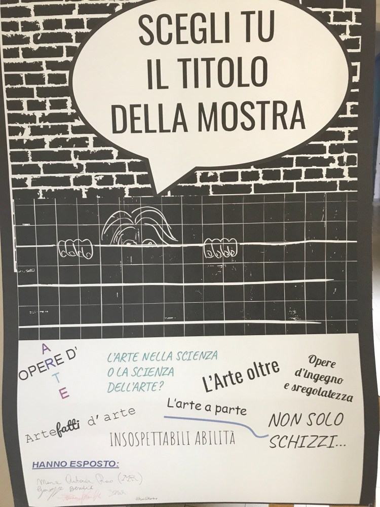 Alcuni nostri professori appassionati di pittura, hanno realizzato una mostra con alcuni dei loro quadri. Le opere sono esposte nel corridoio del piano terra. Il titolo incuriosisce i visitatori: “Scegli tu il titolo della mostra”.