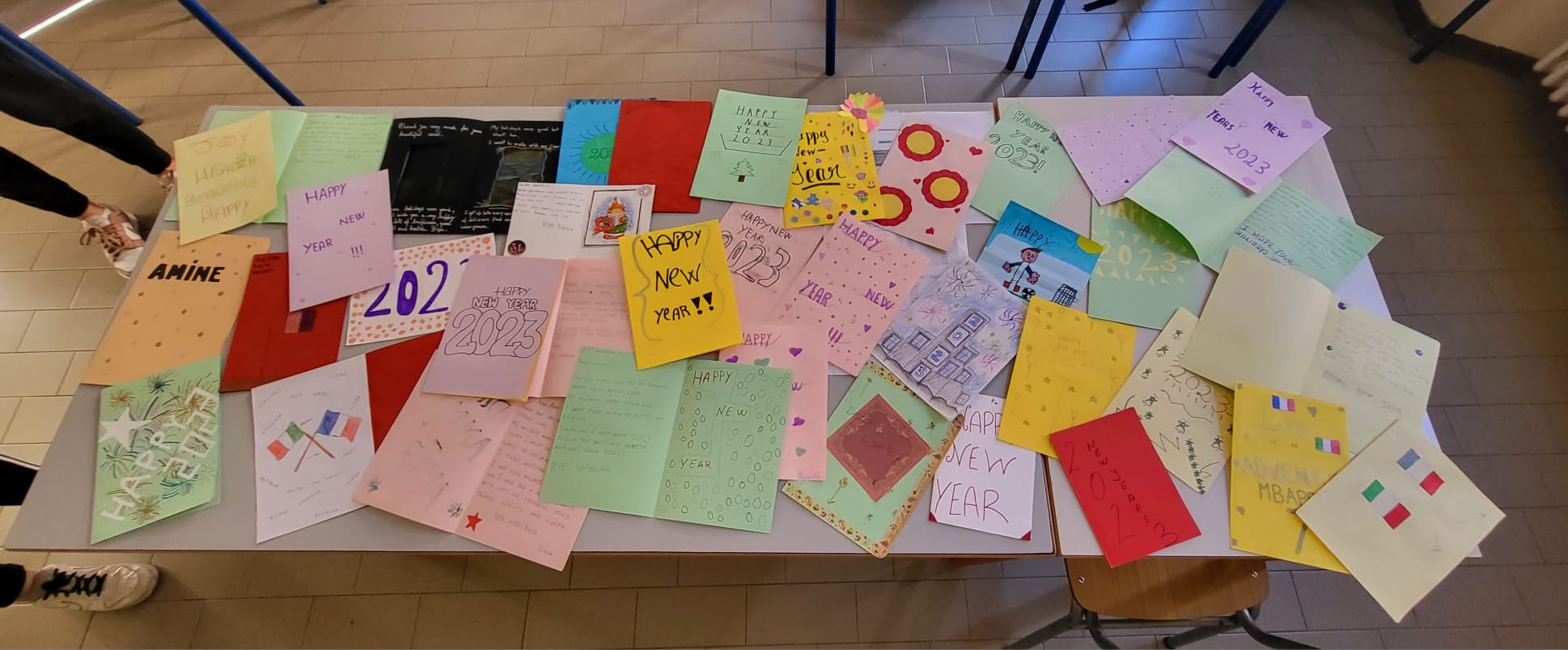 My class 2B, together with class 2A, participated in a language exchange project with a French school, with our English teacher Ms. Ceruti. We posted about ourselves on a Padlet board (a virtual notice board we sometimes use for our projects), then met the French kids online and introduced them to our Giuseppe Mazzini school. The French students then sent us some cards with their new year’s greetings. We too have reciprocated by making cards for them with our wishes.