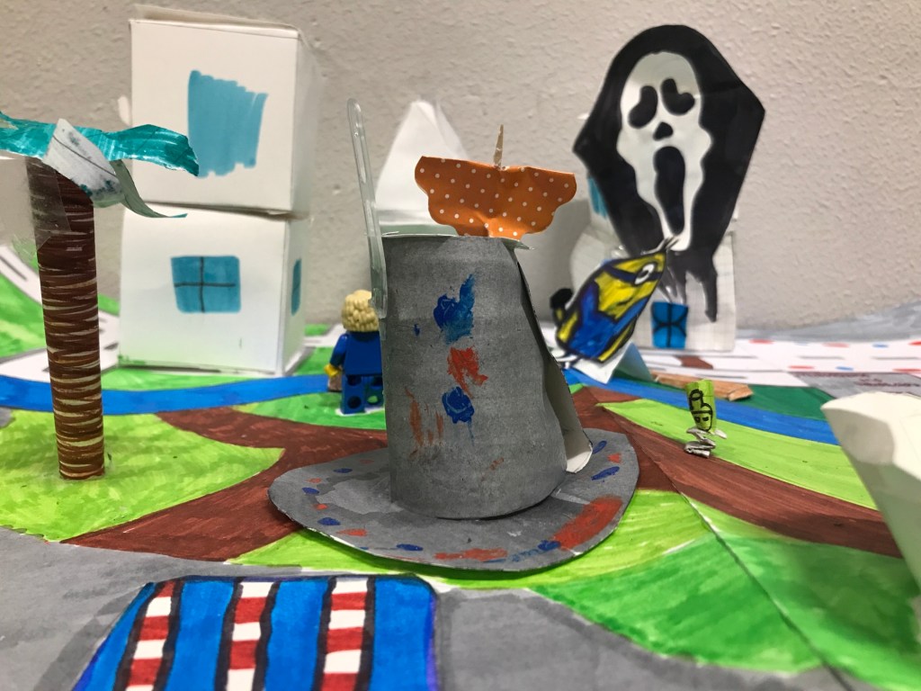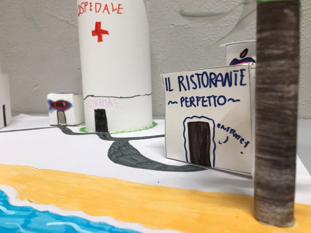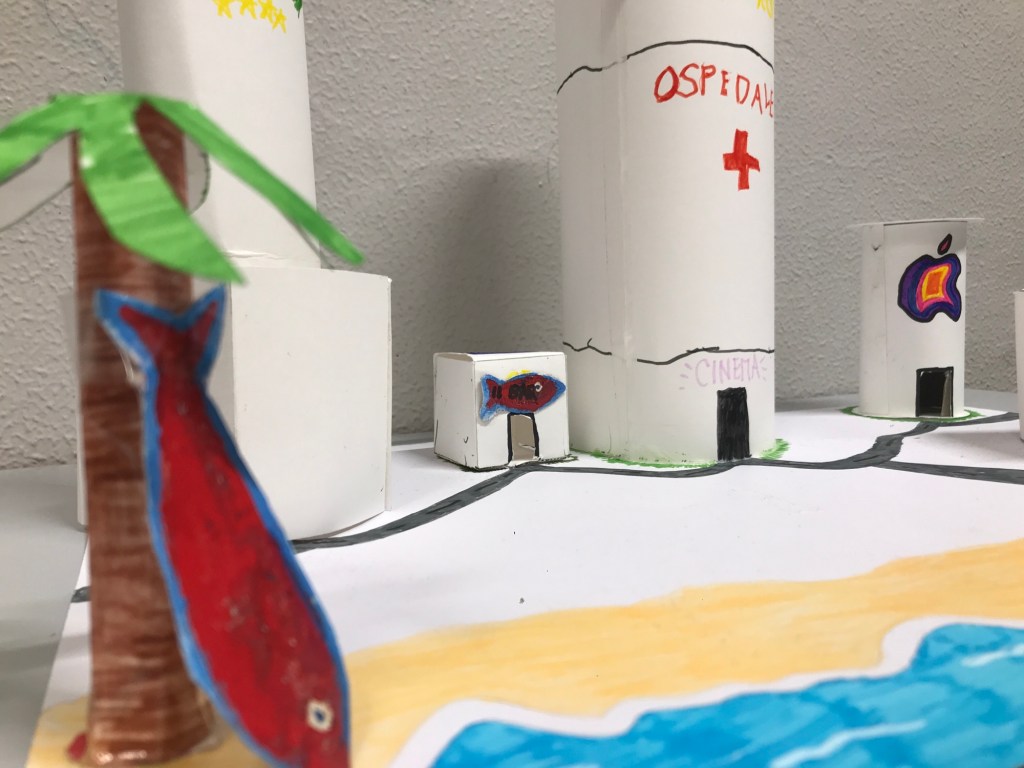 In un giorno di fine ottobre, alle porte di Halloween, la nostra prof di religione, Chiara Dionedi, ci ha proposto un lavoro di gruppo da fare in due settimane. L’obiettivo era quello di costruire una città con materiali da riciclo e di scriverne le leggi. Nella nostra classe, la 2 ^ A, abbiamo costruito tre città, ognuna con un tema diverso. Per esempio un gruppo ha creato: “La città del cinema”, dove ogni quartiere era dedicato ad un film o ad un genere cinematografico diverso. Gli altri gruppi si sono impegnati a costruire altre città con temi e idee diverse.