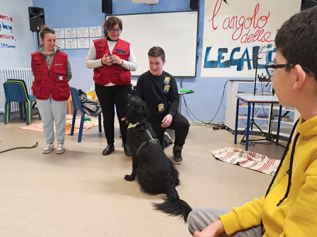 Il progetto di Pet Therapy, che si è concluso in queste settimane, ci ha insegnato a interagire con gli animali traendone beneficio. Giorgia e Thelma, dell’Associazione Centro Cinofilo Val Luretta, ci hanno spiegato che l’addomesticamento degli animali da parte dell’uomo ha origini molto antiche, ma solo all’inizio del XX secolo si è capito quanto la vicinanza degli animali possa avere effetti positivi e terapeutici.
