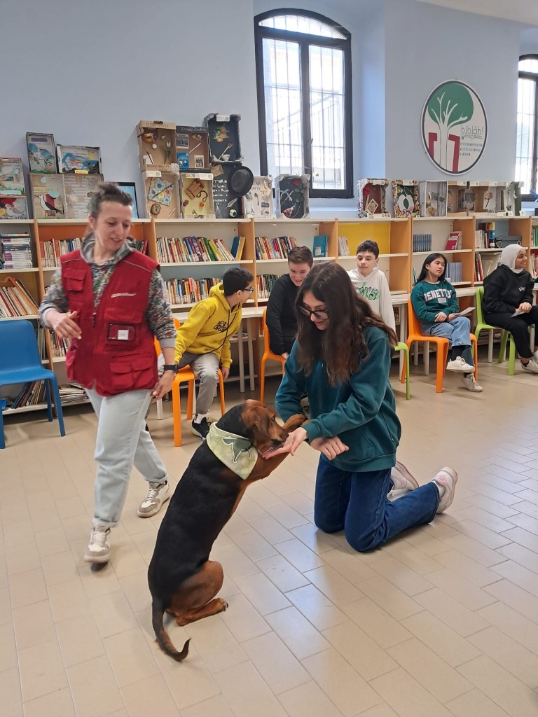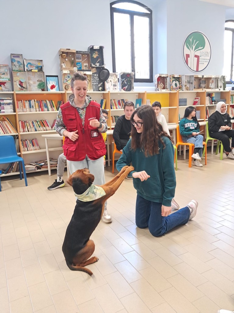 La dottoressa americana Erica Friedman, osservando per un anno pazienti dimessi dall’ospedale a seguito di problemi cardiaci, ha addirittura rilevato una correlazione tra la loro sopravvivenza ed il possesso di animali domestici. Dopo questa breve introduzione, Giorgia e Thelma ci hanno insegnato a prenderci cura di un animale dedicandogli tempo e attenzioni. Ci hanno anche detto che avere un cane da accudire contribuisce al nostro sviluppo cognitivo ed emotivo e ci insegna valori importanti come il rispetto, la fiducia, la pazienza; inoltre riduce l’ansia, l’aggressività e il senso di solitudine.