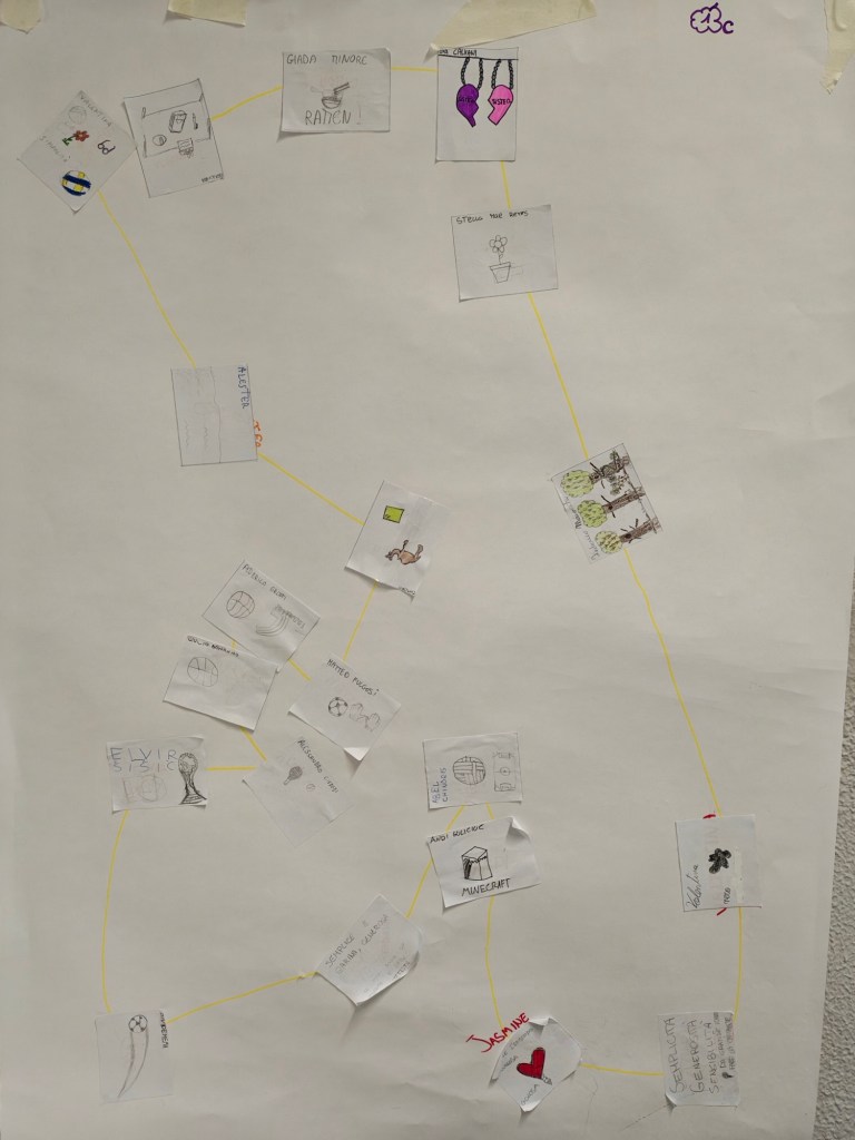 Durante le prime settimane di scuola, per aiutarci a conoscerci meglio, le nostre insegnanti hanno organizzato un progetto di accoglienza con educatrici professioniste. Durante gli incontri in classe, abbiamo fatto diverse attività molto interessanti. Abbiamo riflettuto sugli impegni scolastici, su quanto eravamo pronti ad affrontarli o, viceversa, se avevamo qualche difficoltà; ci siamo presentati in modo approfondito e abbiamo provato a creare un vero gruppo-classe. Per questo, durante un incontro, abbiamo disegnato su alcuni piccoli foglietti qualcosa che ci rappresentava, una caratteristica del nostro carattere, un nostro interesse, per poi disporli su un cartellone. Sotto ad ogni foglietto abbiamo messo un puntino. Quindi abbiamo avvicinato i diversi puntini, collegando le esperienze e le emozioni che condividevamo con gli altri compagni. Abbiamo creato delle mappe con i nostri simboli, ad esempio, il mare con il sole, un microfono, il pennello con i colori, che ci facevano capire cosa avevamo in comune con gli altri studenti. Alla fine, abbiamo unito con una linea tutti i nostri simboli e abbiamo cercato di dare un senso all’immagine che stava nascendo, cercando di essere un po’ creativi. Abbiamo trovato le attività molto coinvolgenti, ci siamo resi conto che pur diversi siamo molto simili! Questo progetto è stato molto utile, ci ha aiutato a farci diventare una vera e propria squadra e a superare le nostre iniziali timidezze.