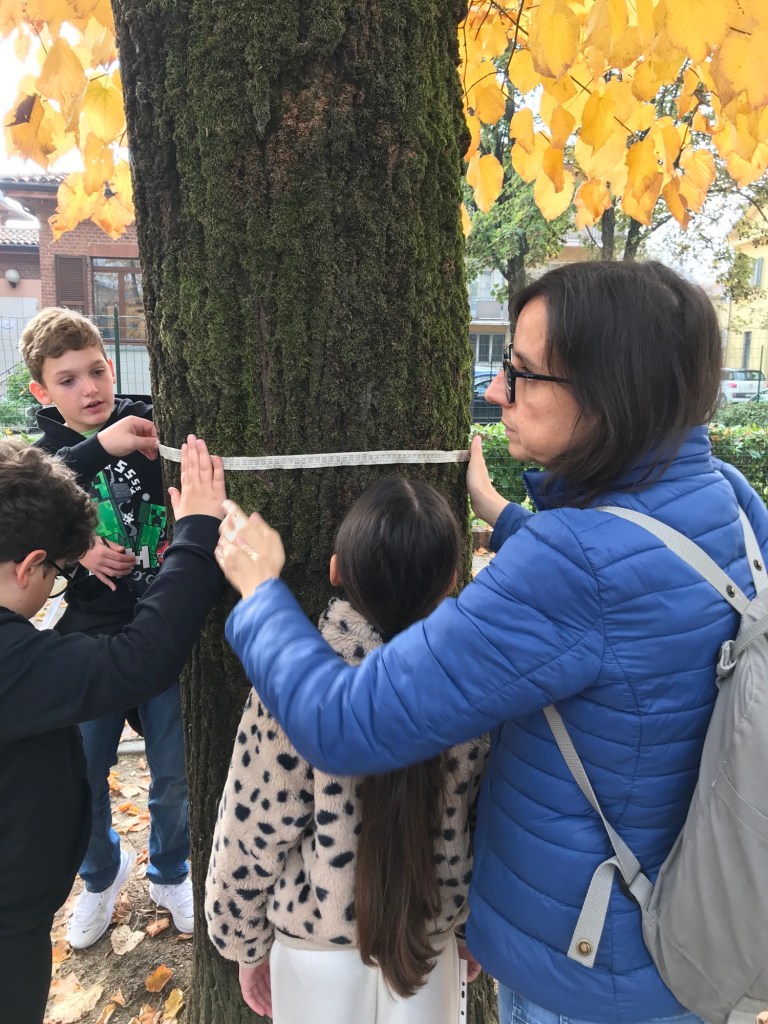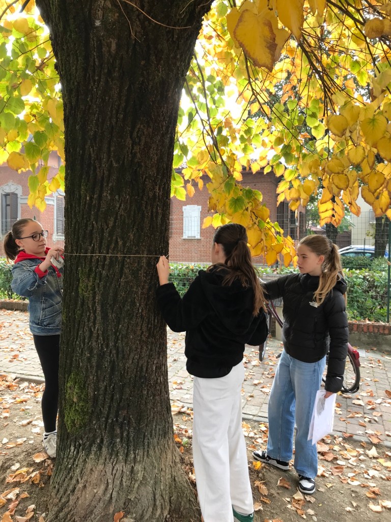 Come ultima cosa, abbiamo osservato i polloni, cioè delle piccole piantine che stanno alla base dell’albero, che solitamente vengono sradicate perché rubano il nutrimento all’albero stesso. Alla fine, abbiamo misurato la circonferenza di alcuni alberi con un filo e un metro da sarta. Abbiamo scoperto che un tiglio che si trova dietro l’edificio del Comune, in piazza Olubra, è l’albero più grande, con una circonferenza di ben 2,08 metri. Probabilmente è ancora uno degli alberi piantati nel 1934 nel nostro paese e quindi sta per compiere l’età di 100 anni!
