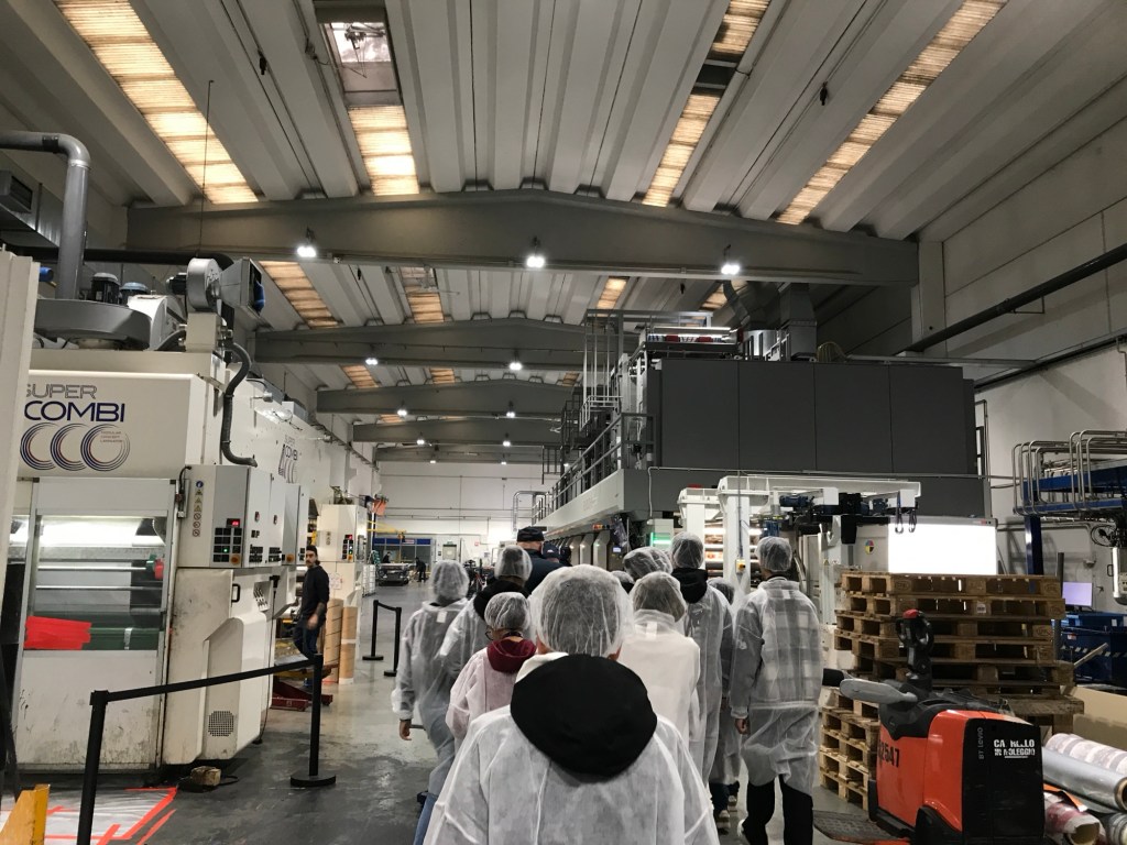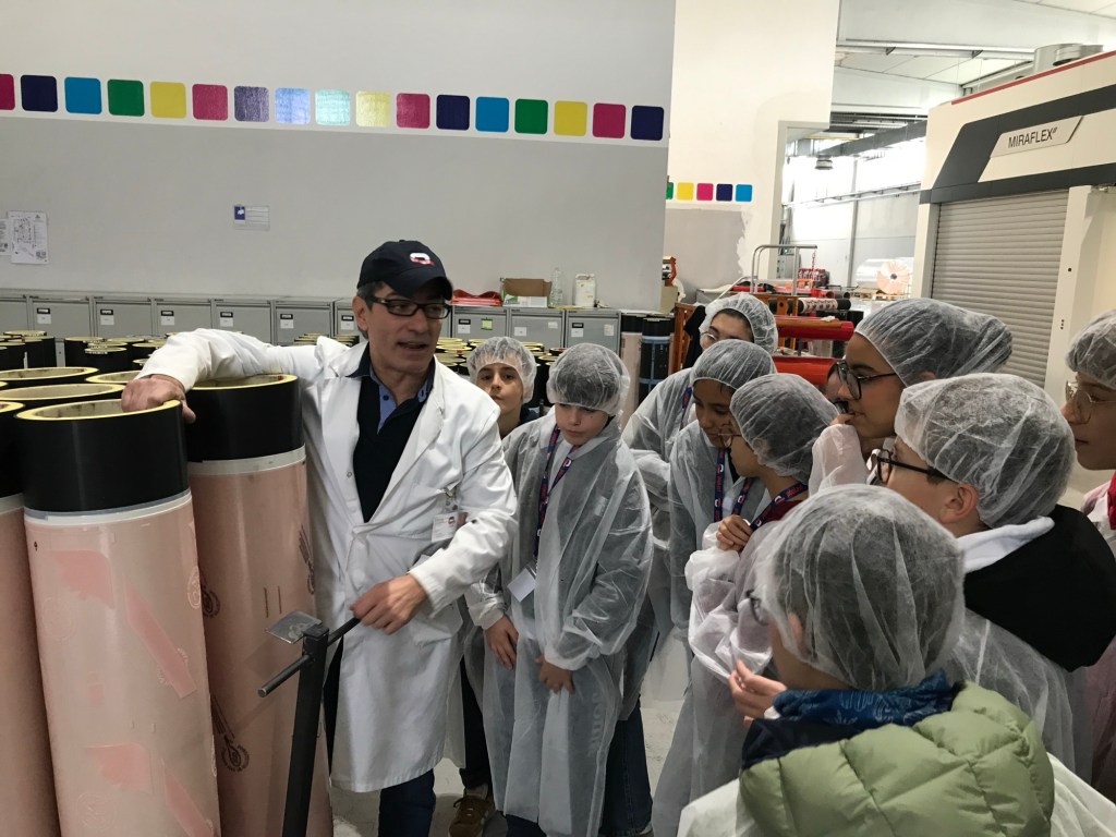 Impressionante è stato ammirare le immense stampanti che producevano immagini sulle bobine di pellicola plastica con una velocità così alta da finire il lavoro in pochissimo tempo. Poi abbiamo anche potuto conoscere tutta la parte prima della stampa, ovvero la progettazione e la “Color Correction”, fase in cui i grafici sistemano il colore del packaging utilizzando Photoshop.