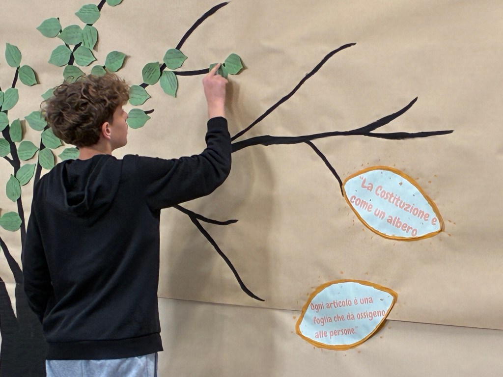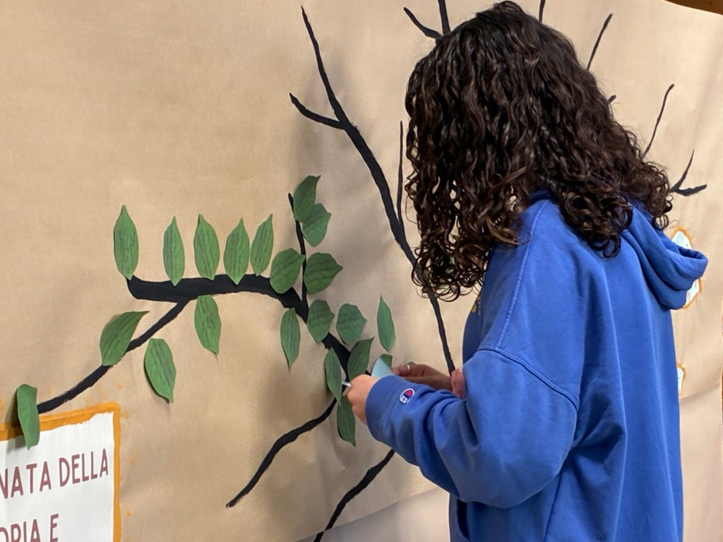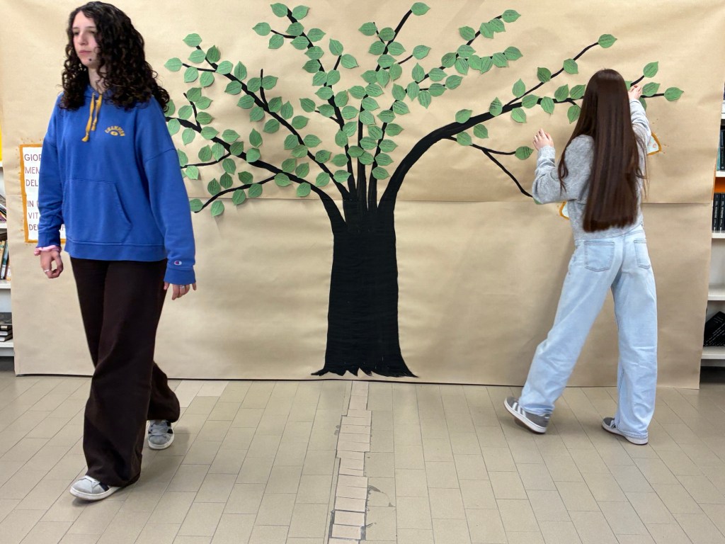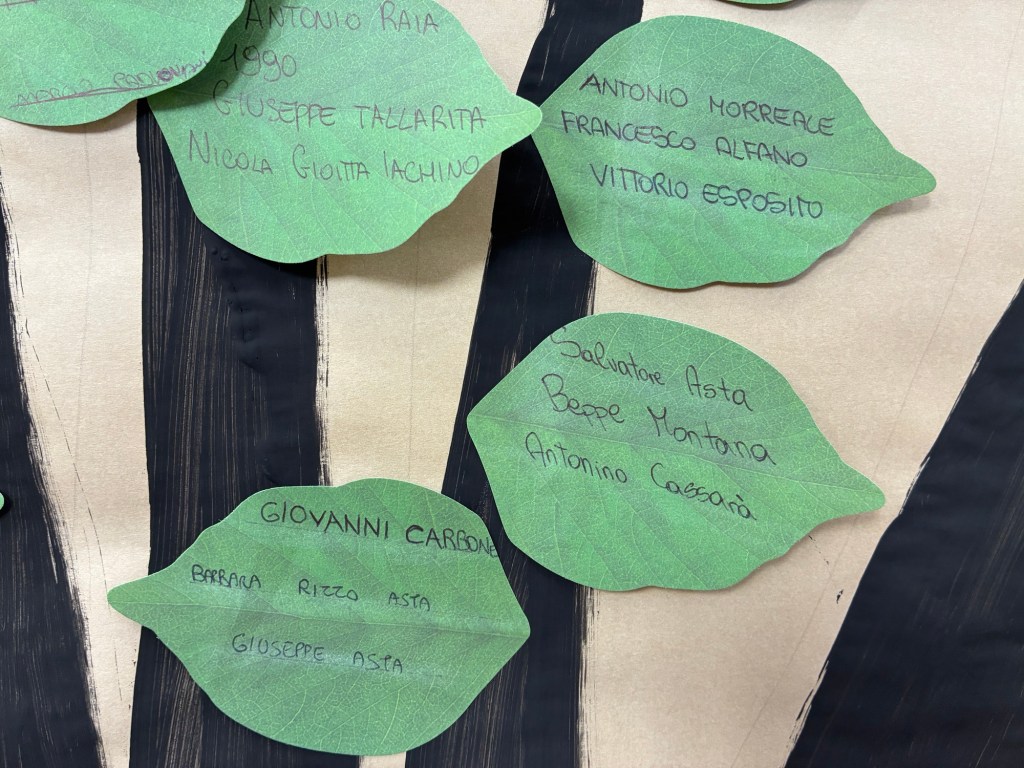 Quest’anno, i ragazzi hanno scritto i nomi delle vittime su foglie verdi che hanno attaccato all’albero della legalità che, piano piano, ha preso vita e si è coperto di foglie.