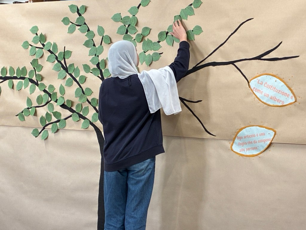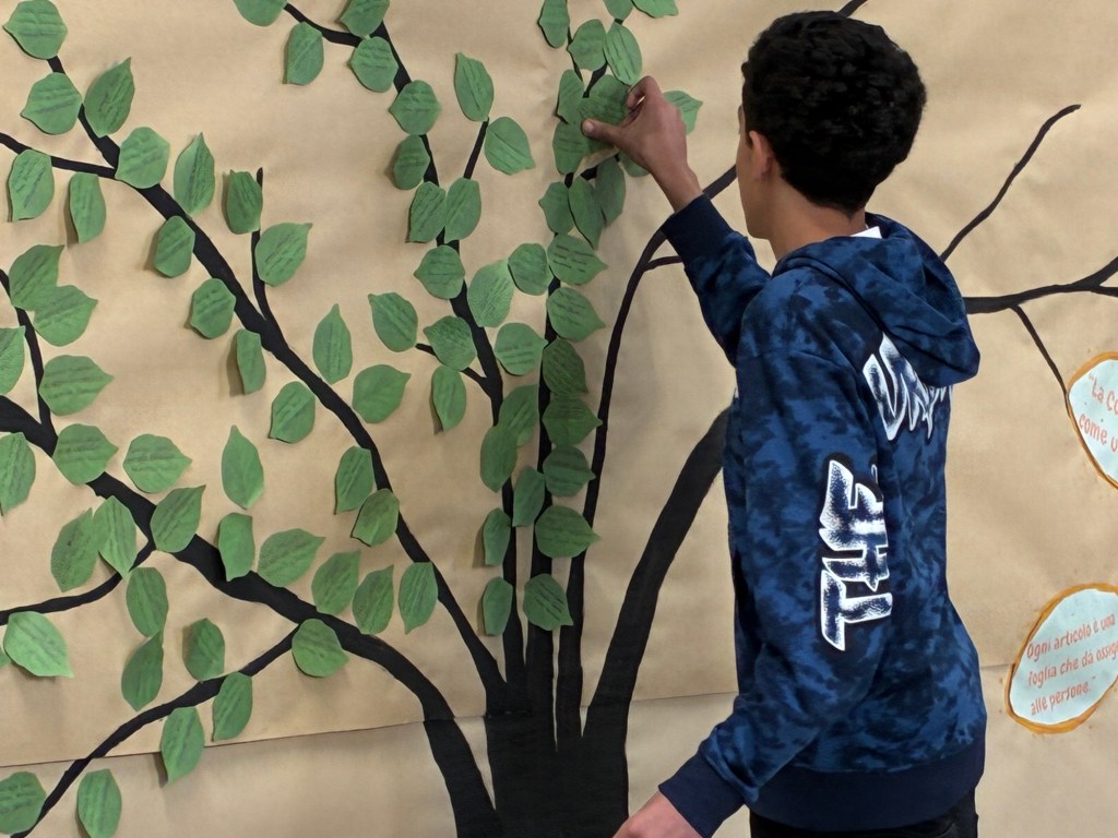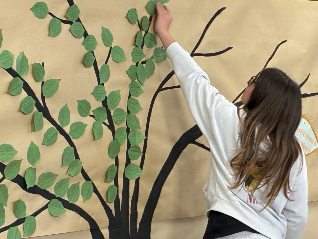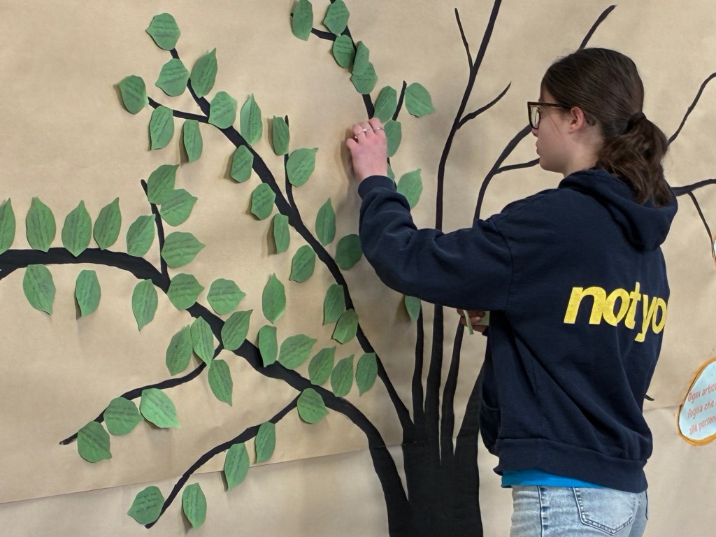 Quest’anno, i ragazzi hanno scritto i nomi delle vittime su foglie verdi che hanno attaccato all’albero della legalità che, piano piano, ha preso vita e si è coperto di foglie.