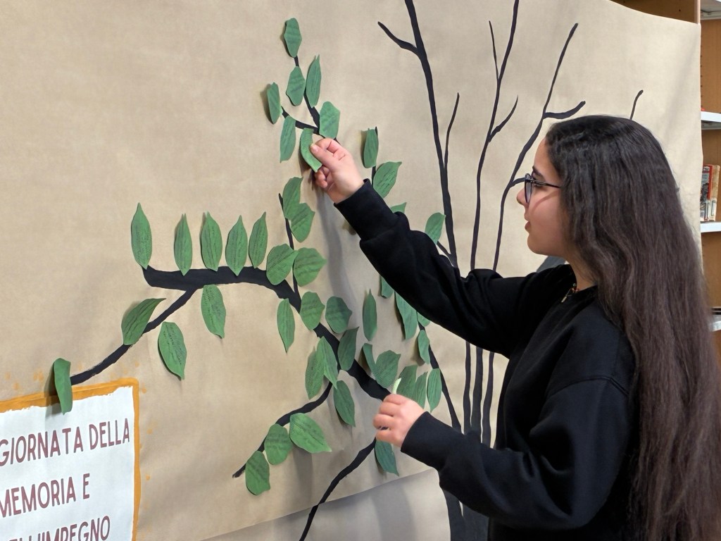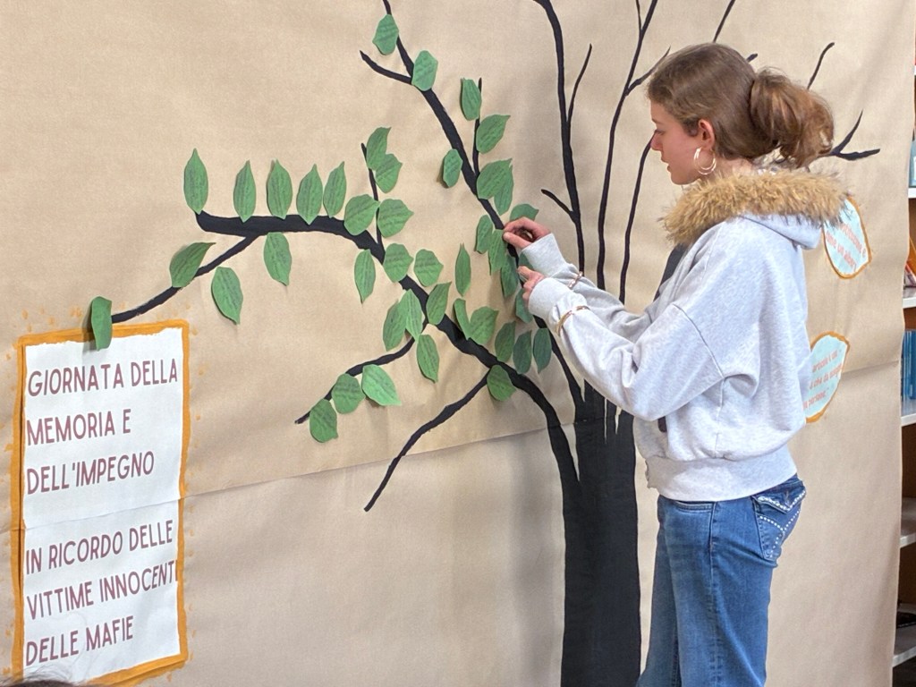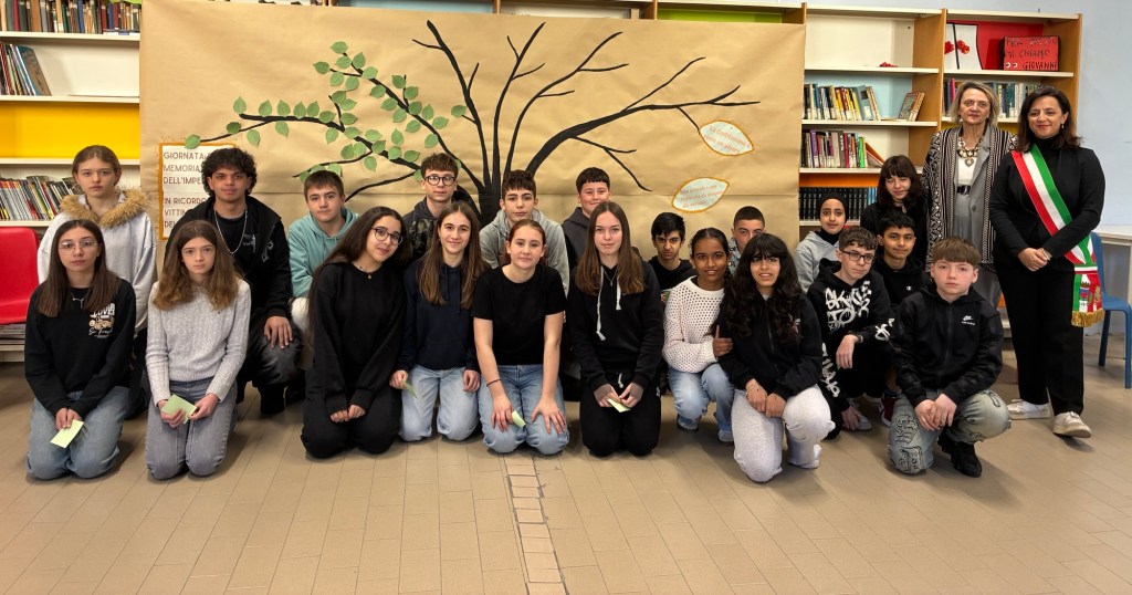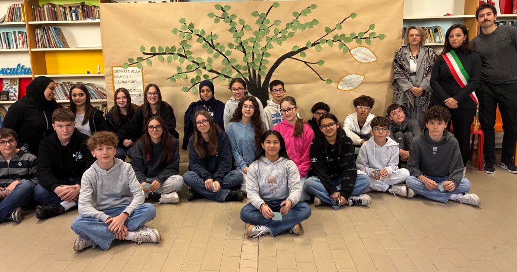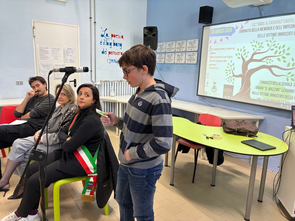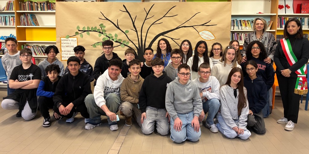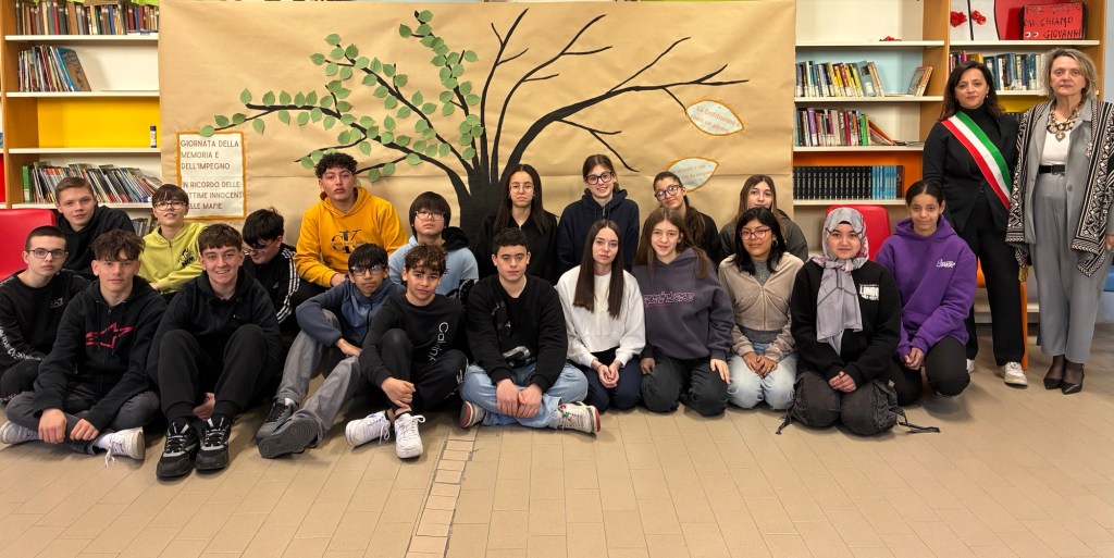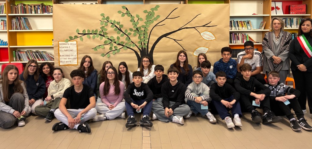 Le classi terze della scuola secondaria “G. Mazzini” hanno dato vita alla Giornata della Memoria e Impegno in ricordo delle vittime delle mafie 2026, promossa dall’associazione Libera. Si tratta del momento in cui, in tutto il paese, nelle piazze, nelle scuole, insieme, si leggono gli oltre 1000 nomi delle vittime delle mafie. Vengono letti proprio tutti i nomi per non dimenticare nessuna vittima, perché vogliamo ricordarli tutti, quelli dei quali conosciamo la storia e quelli che ancora sono sconosciuti.