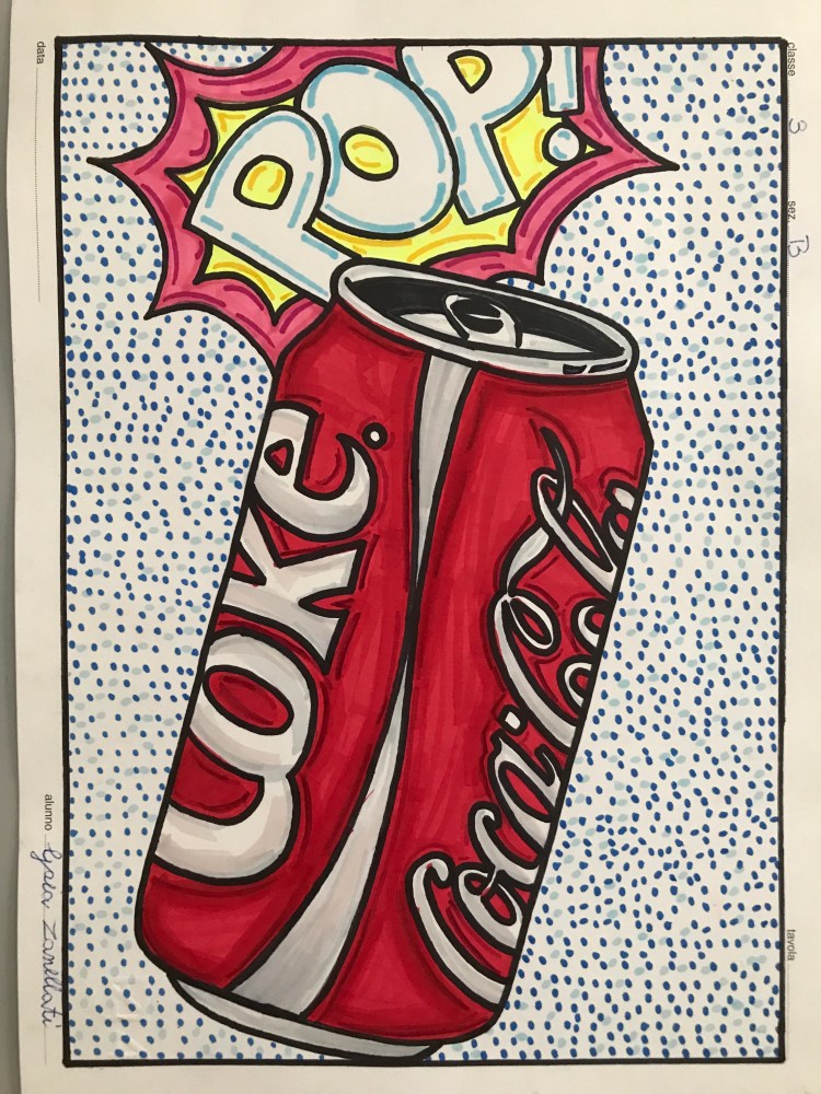 Le classi del prof. Bernini hanno conosciuto la Pop Art, un movimento artistico che nasce tra gli anni ’50 e ’60 del secolo scorso e che rappresenta una rivoluzione nell’arte perché comincia a prendere come modelli gli elementi semplici e banali della vita di tutti i giorni che rappresentano la società di massa e del consumismo, la superficialità della pubblicità.