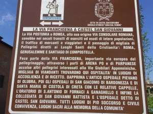 Questa targa, che si trova vicino alla chiesa di San Rocco, spiega una parte della storia del luogo in cui viviamo. Castel San Giovanni è sempre stato un luogo di passaggio di pellegrini, di mercanti e di viaggiatori, di scambi, di ospitalità, sin dalla sua fondazione.
