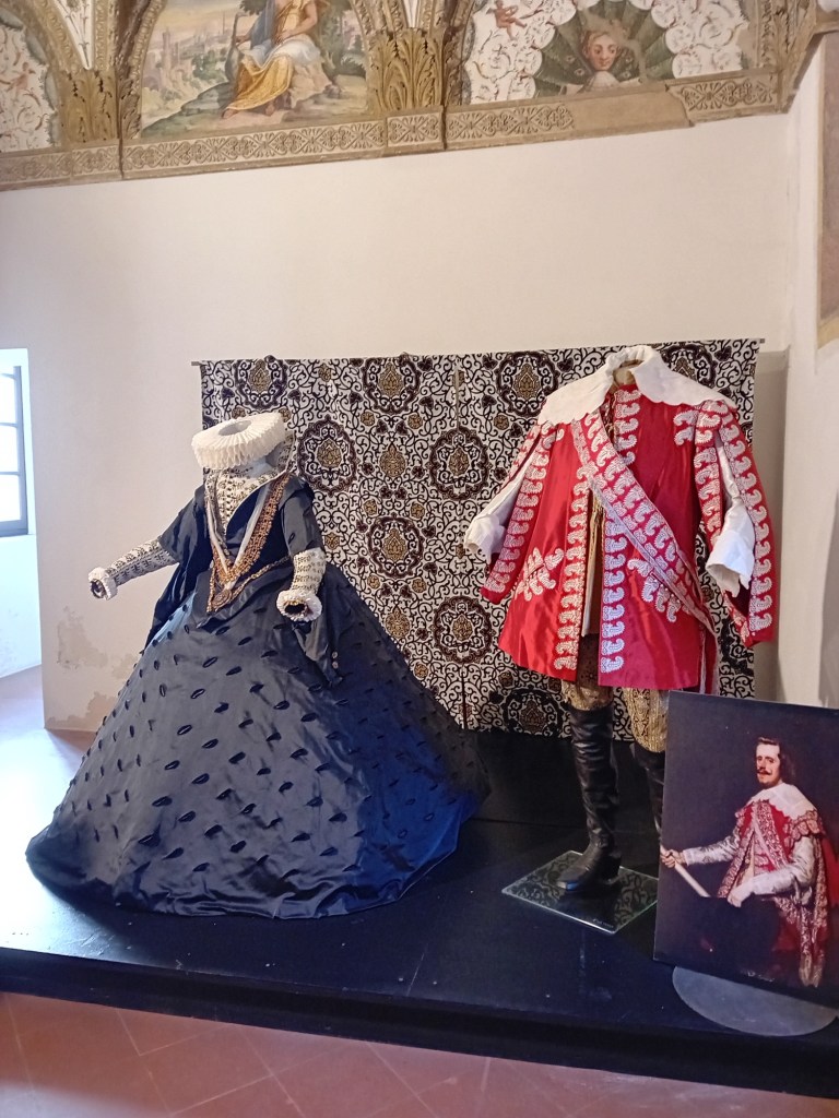 Vi erano parecchi abiti all’interno: abiti per le donne, per gli uomini tra cui anche l’abito di Filippo II Re di Spagna. Ci sono le statue dei familiari di Vespasiano Gonzaga Colonna. Abbiamo visitato, con la guida, la galleria degli Antichi, il Corridoio del palazzo Ducale, un luogo che ti toglie il fiato, dove le pareti sono tutte magnificamente decorate. Dopo aver visitato il museo del Ducato, ci siamo concessi una breve pausa, per poi fare una piccola passeggiata vedendo le mura della città di Sabbioneta. Siamo stati accompaganti dalle spiegazioni del professore di arte della 2^F, il professor Dazzi.