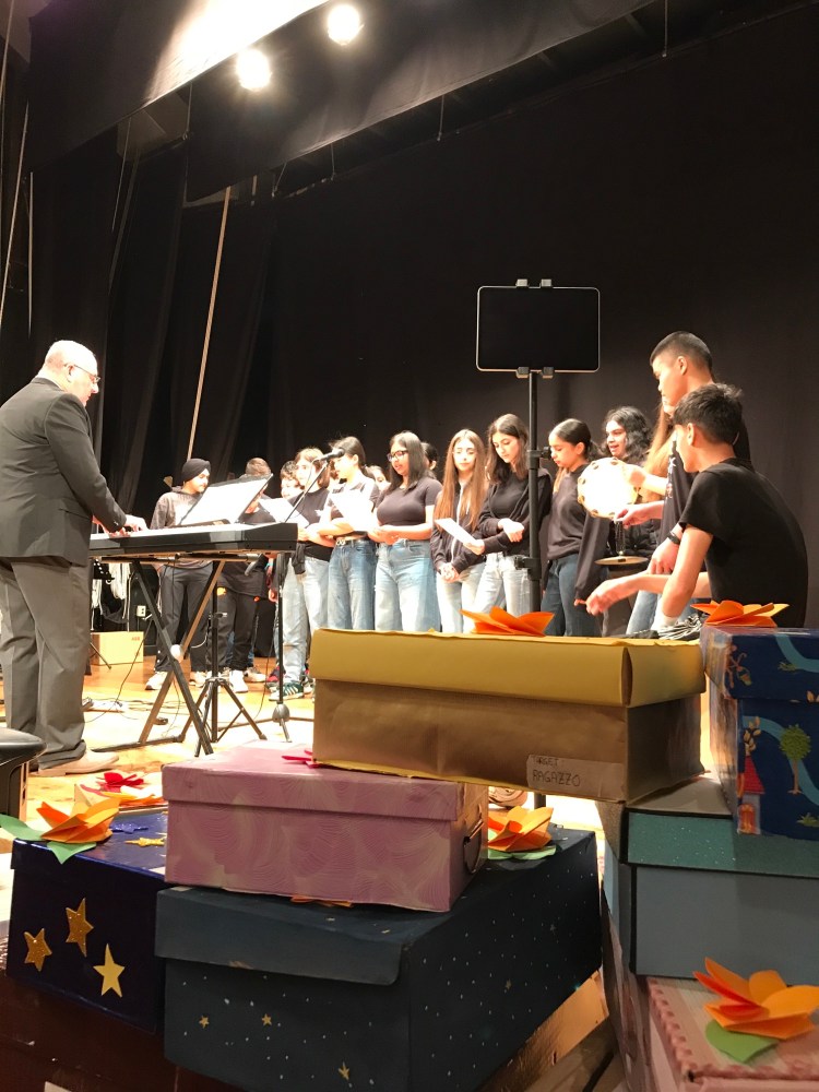 Le classi, quindi, si sono divise in gruppi ed hanno creato delle scatole, le hanno decorate e riempite con oggetti utili ma anche con una cosa dolce, un passatempo ed un biglietto gentile, creato dai ragazzi. Abbiamo avuto in dono la pasta delle cooperative di Libera Terra e materiale da destinare alla solidarietà da parte dell’azienda Amazon. Nel frattempo, tutte le classi quarte e alcune classi della secondaria hanno incontrato gli esperti dell’associazione Libera per partecipare a laboratori sulla legalità, Inoltre i ragazzi della secondaria sono stati accolti dalla Casa della Carità “Beato Don Beotti” per entrare nel mondo dei volontari Caritas.