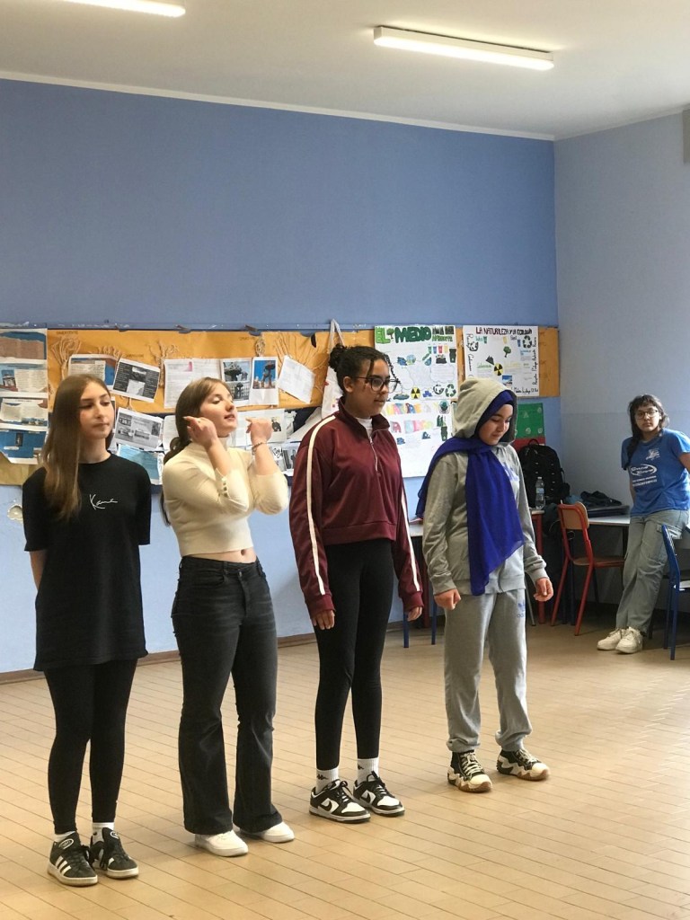 Eravamo circa 20 studentesse a partecipare al laboratorio teatrale, accompagnate dalla Prof. Monica Murtas e dall’insegnante esperto e attore Mauro Caminati, di Manicomics Teatro. Ogni mercoledì, per circa una decina di appuntamenti, dal mese di marzo a quello di maggio, ci siamo incontrati presso la scuola media Mazzini. All’inizio, grazie a Mauro e ai suoi giochi, abbiamo cercato di socializzare e conoscersi meglio, quindi, dopo qualche lezione abbiamo cominciato a riflettere sul tema della libertà: cos’è per noi la libertà, come si esprime, perché la cerchiamo, con chi la condividiamo…