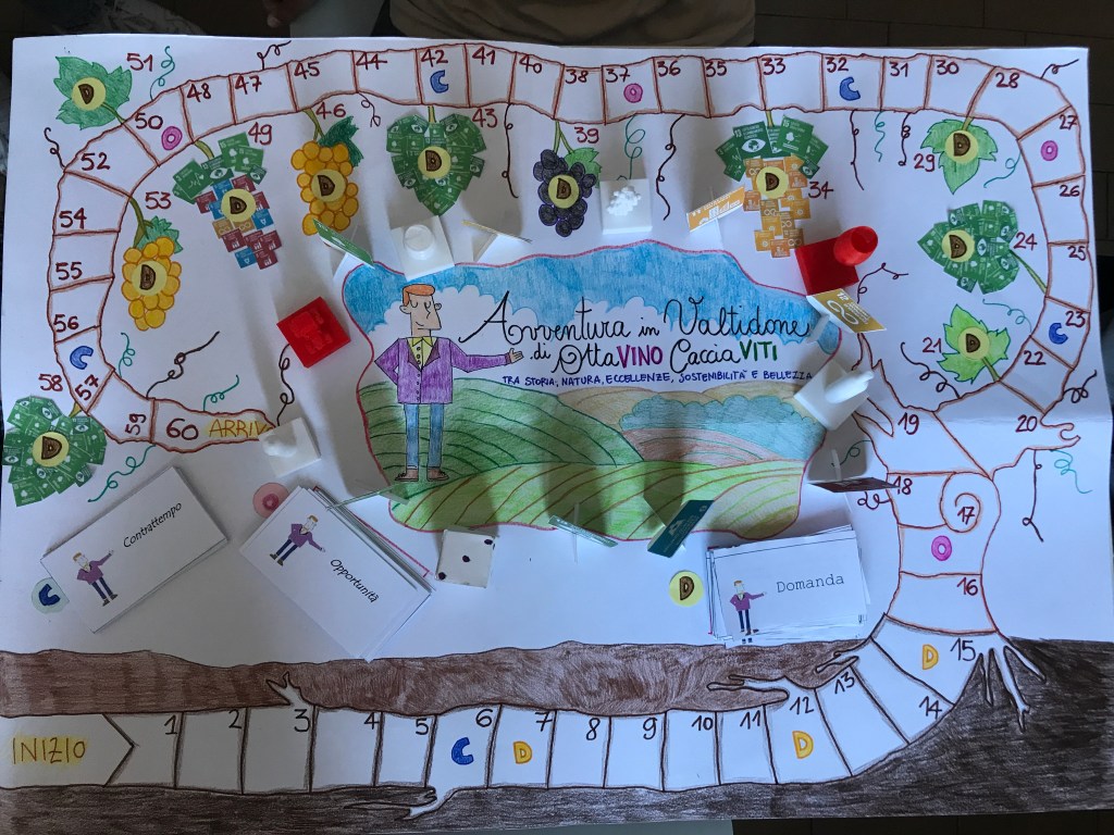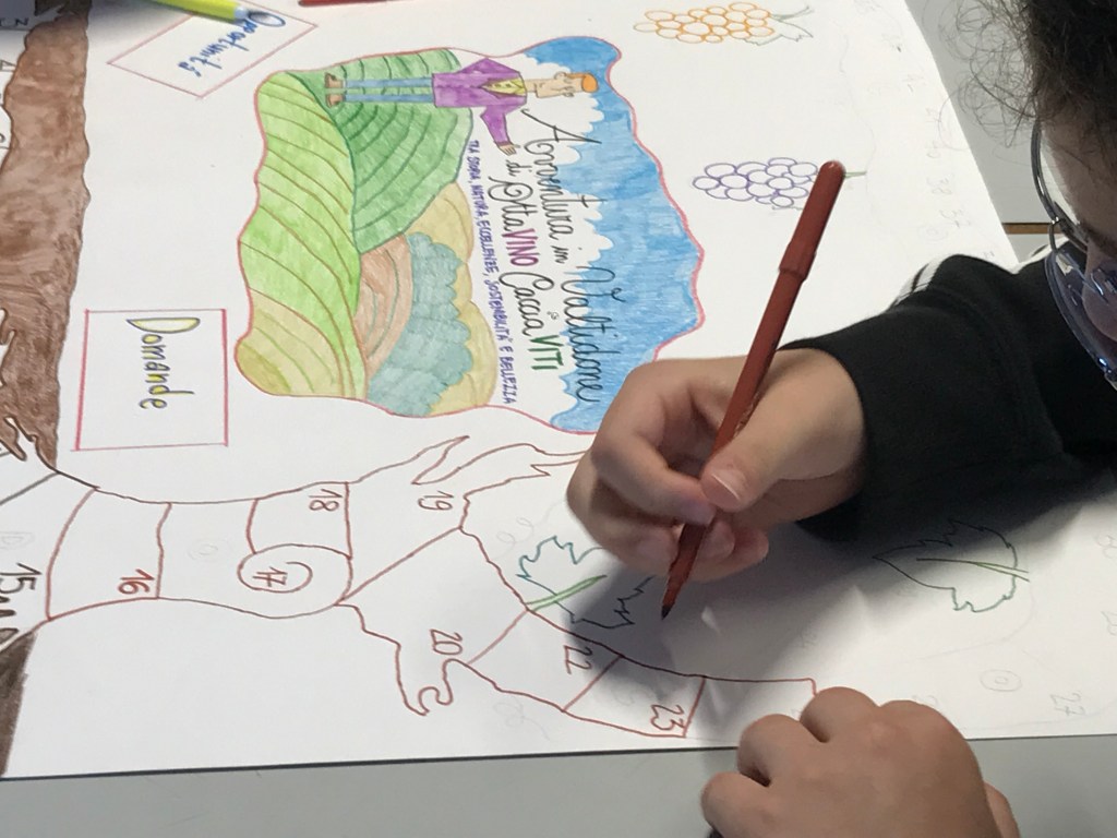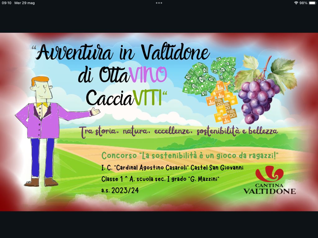 Era un normale giorno di scuola, ad inizio secondo quadrimestre dell’anno scolastico 2023/24, quando la professoressa Antoniotti è entrata in classe dicendoci che avremmo partecipato ad un concorso proposto dalla Cantina Valtidone di Borgonovo. Il suo titolo era: “La Sostenibilità è un gioco da ragazzi”. L’obiettivo del concorso, destinato alle classi delle scuole dalla primaria alle superiori, era quello di creare un gioco che avesse come argomenti: la sostenibilità ambientale, la viticoltura e l’Agenda 2030. La 2^A ha cominciato subito i lavori, con alcune lezioni preparate dalla nostra prof. che ci hanno spiegato che la viticoltura è una delle più antiche attività umane ed è presente sul nostro territorio piacentino dall’Età del Bronzo. Etruschi e Romani coltivavano viti e producevano vino nel piacentino, come dimostrano numerosi documenti. Sul famoso fegato etrusco del II sec. a.c., ad esempio, è citato il dio Fuflnus, patrono della vendemmia e del vino; al museo archeologico di Piacenza si può trovare un esemplare di Gutturnium, la coppa che dà il nome ad uno dei più famosi vini piacentini. E proseguendo nei secoli, anche il Medio Evo fu un periodo di sviluppo della viticoltura, specialmente per scopi religiosi. Abbiamo visto il “Libro del Maestro” durante un’uscita all’archivio capitolare, dove, in corrispondenza del mese di settembre, è presente una bella miniatura sulla vendemmia. Quindi, in età moderna, la produzione cresce, migliora, si stabilizza e nascono i più famosi vini locali. Abbiamo poi visitato il Museo Etnografico della Val Tidone di Castel San Giovanni, presso Villa Braghieri e abbiamo potuto osservare materiali, attrezzi, oggetti del viticoltore in uso fino agli anni ‘60 del secolo scorso, davvero interessante.